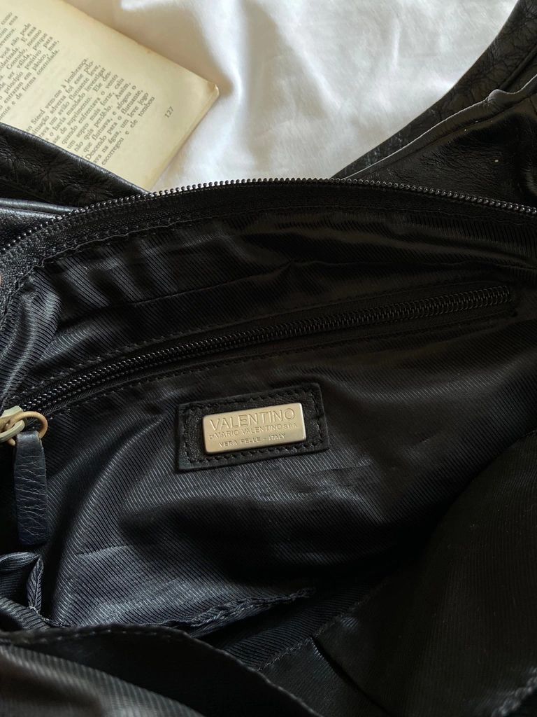 bolsa couro preta Valentino Di Mario