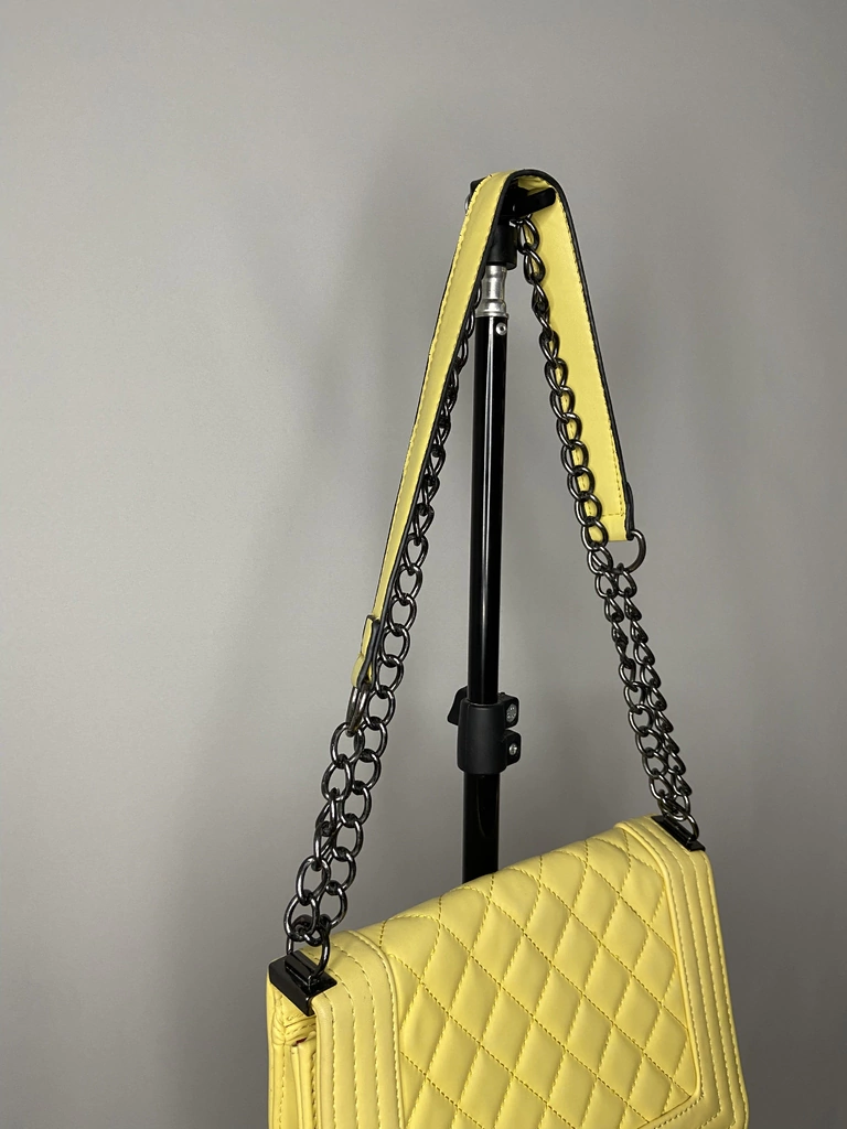 cor amarelo desbotado material couro sintético medidas comprimento 26cm largura 7cm altura sem alça 18cm altura com alça 64cm