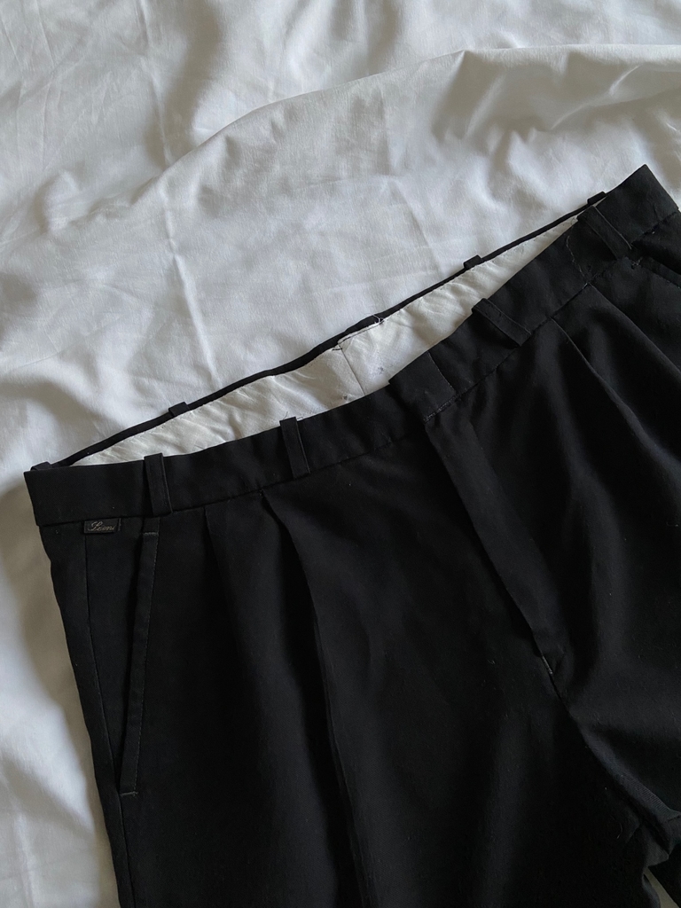 Calça alfaiataria, cor preta, Tecido poliester e linho. Medidas cintura 94cm quadril 124cm gancho 30cm comprimento 104cm