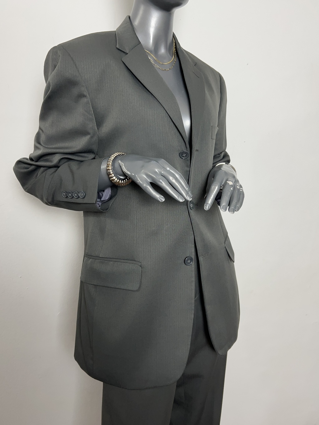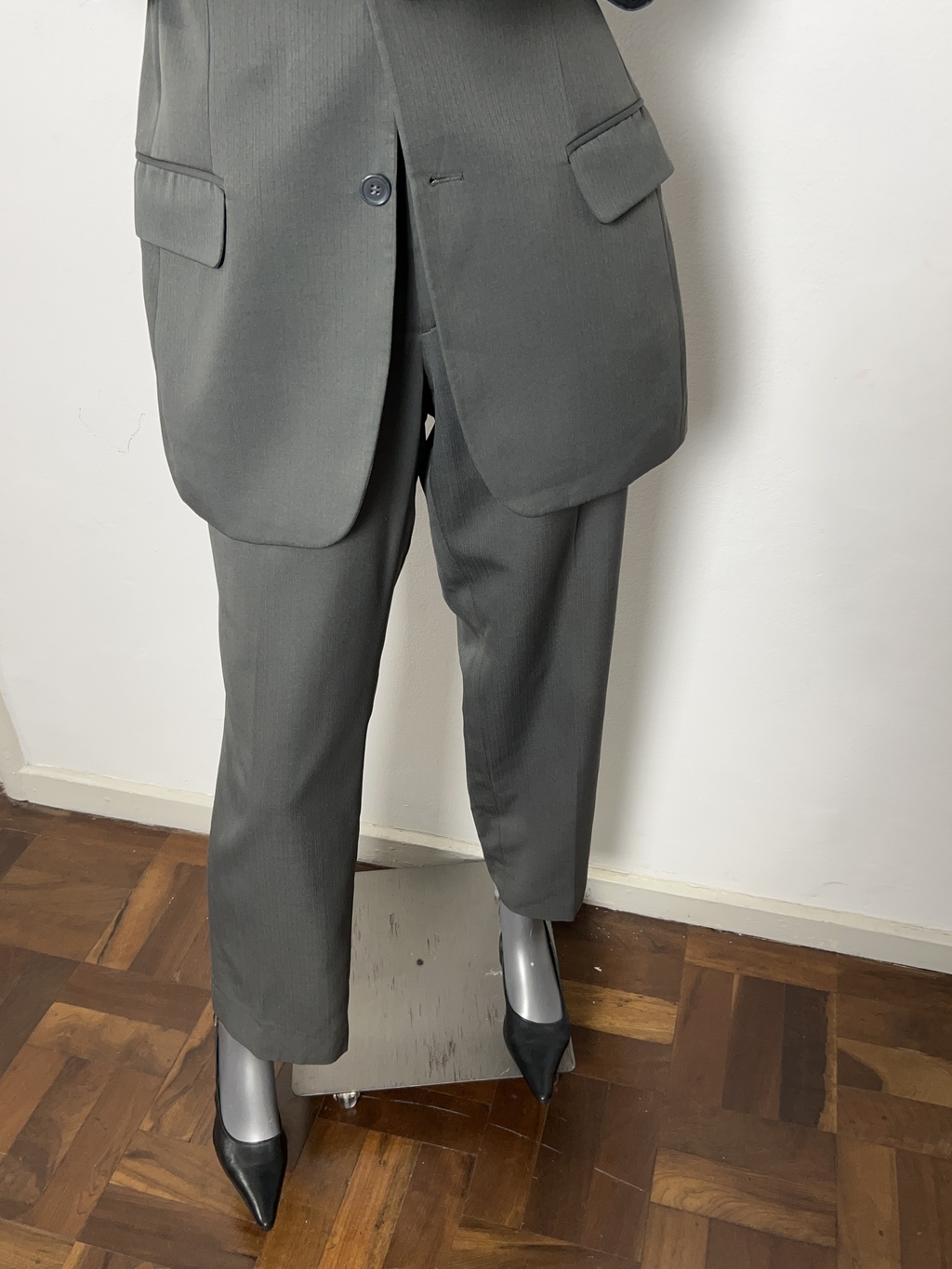 Descubra o Conjunto Makenji na elegante cor cinza com risca de giz, uma peça que une sofisticação e conforto, perfeita para diversas ocasiões, desde reuniões de trabalho até eventos sociais.