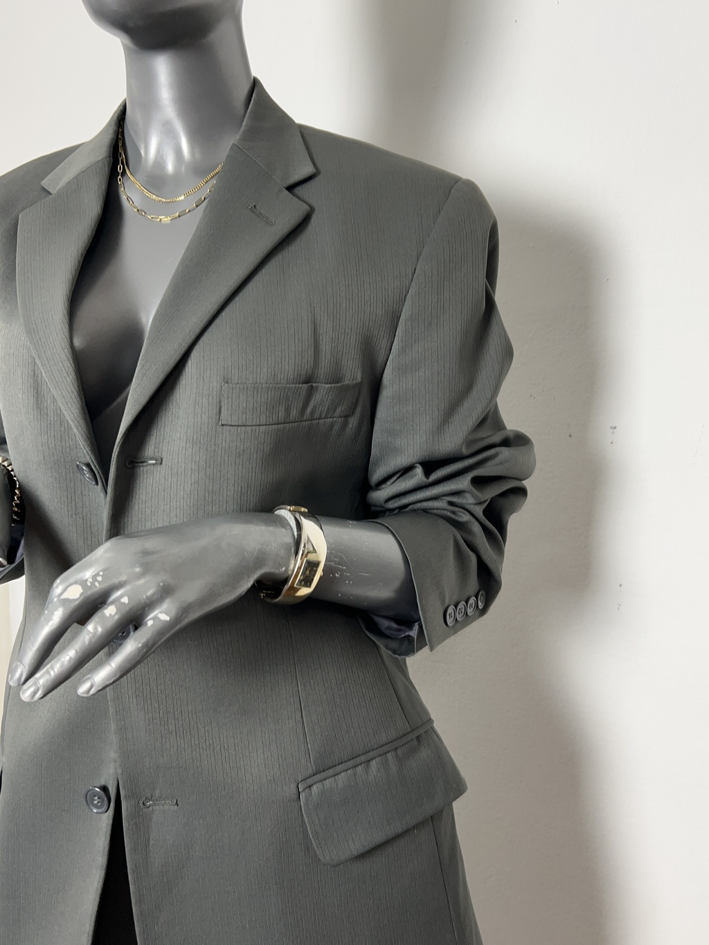 Este conjunto é ideal para quem busca um visual moderno e versátil. O blazer, com seu corte impecável, proporciona um caimento que valoriza a silhueta, enquanto a calça traz conforto e elegância para o dia a dia.