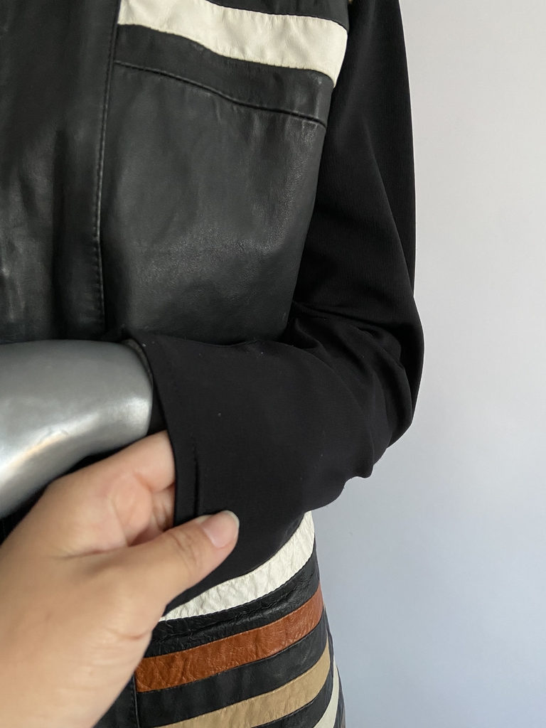 Jaqueta couro com poliamida