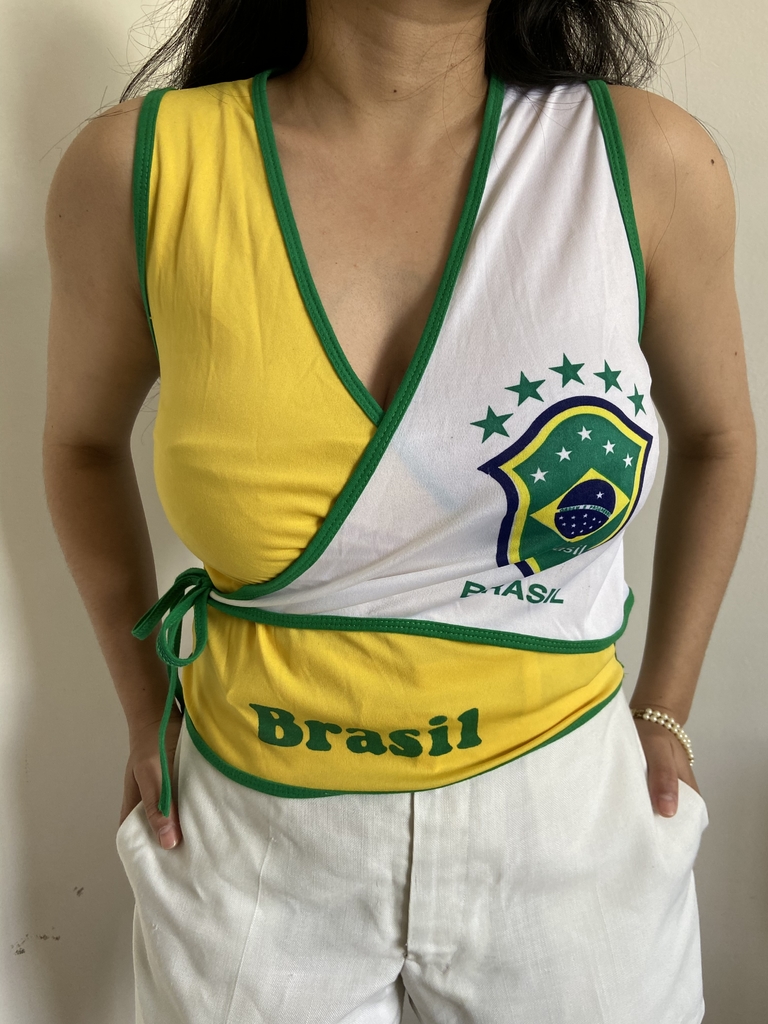 cor amerelo e verde tecido poliéster transpassada medidas busto 96cm comprimento 49cm