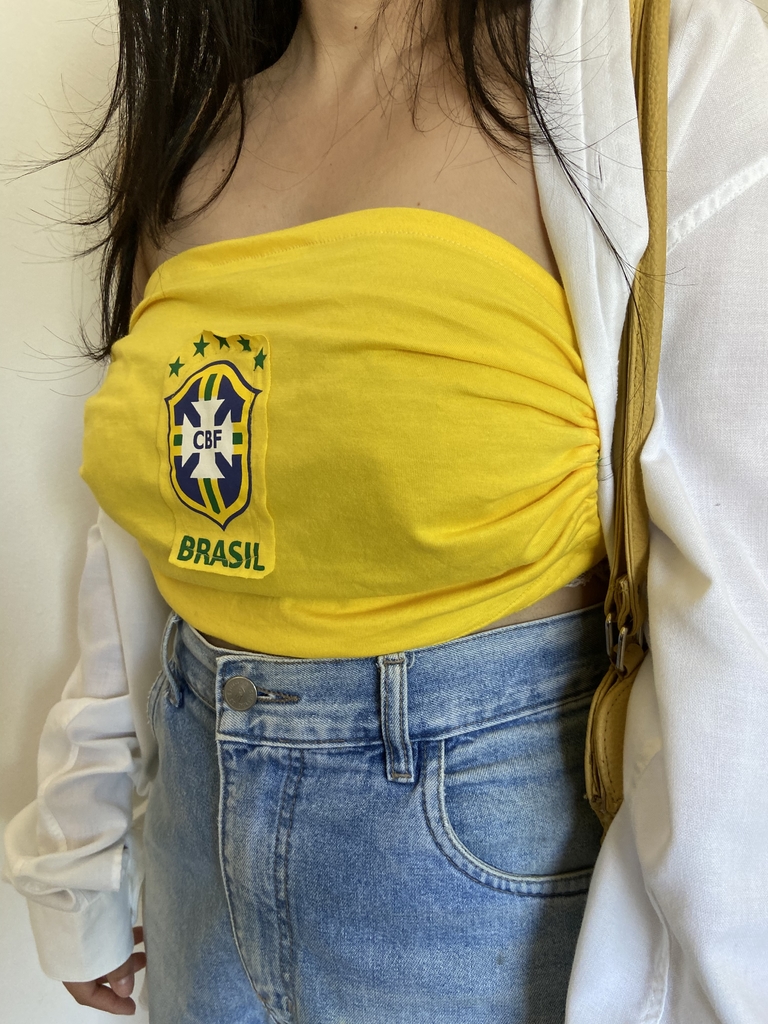 cor amerelo tecido algodão amarração na lateral medidas busto 100cm comprimento 28cm